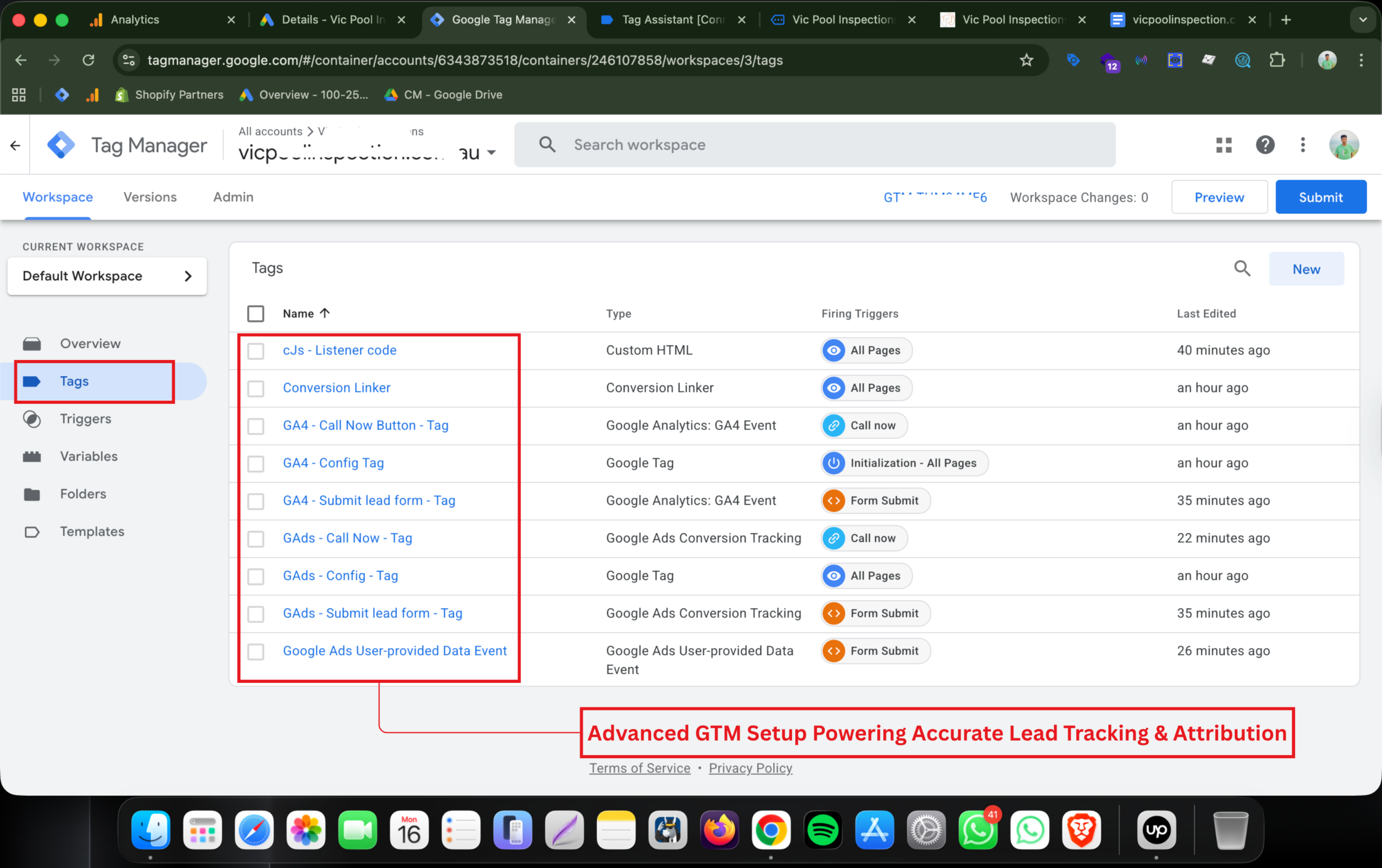 The complete tracking setup was tested and validated using GTM Preview Mode and GA4 DebugView. This ensures all events fire correctly and conversion data is fully reliable.